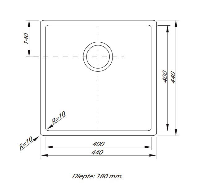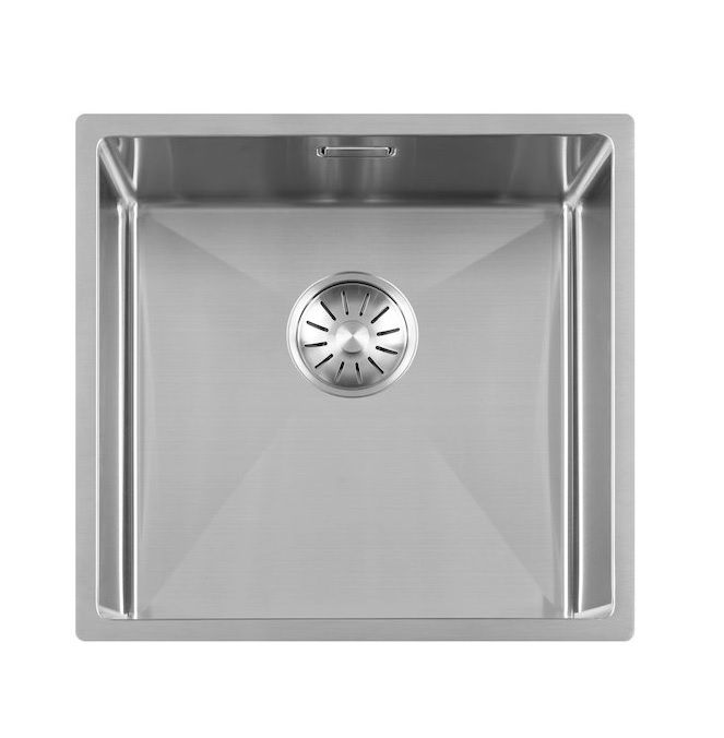 Spoelunit roestvrijstaal. Inclusief: 3½“ korfplugset met design wandoverloop.