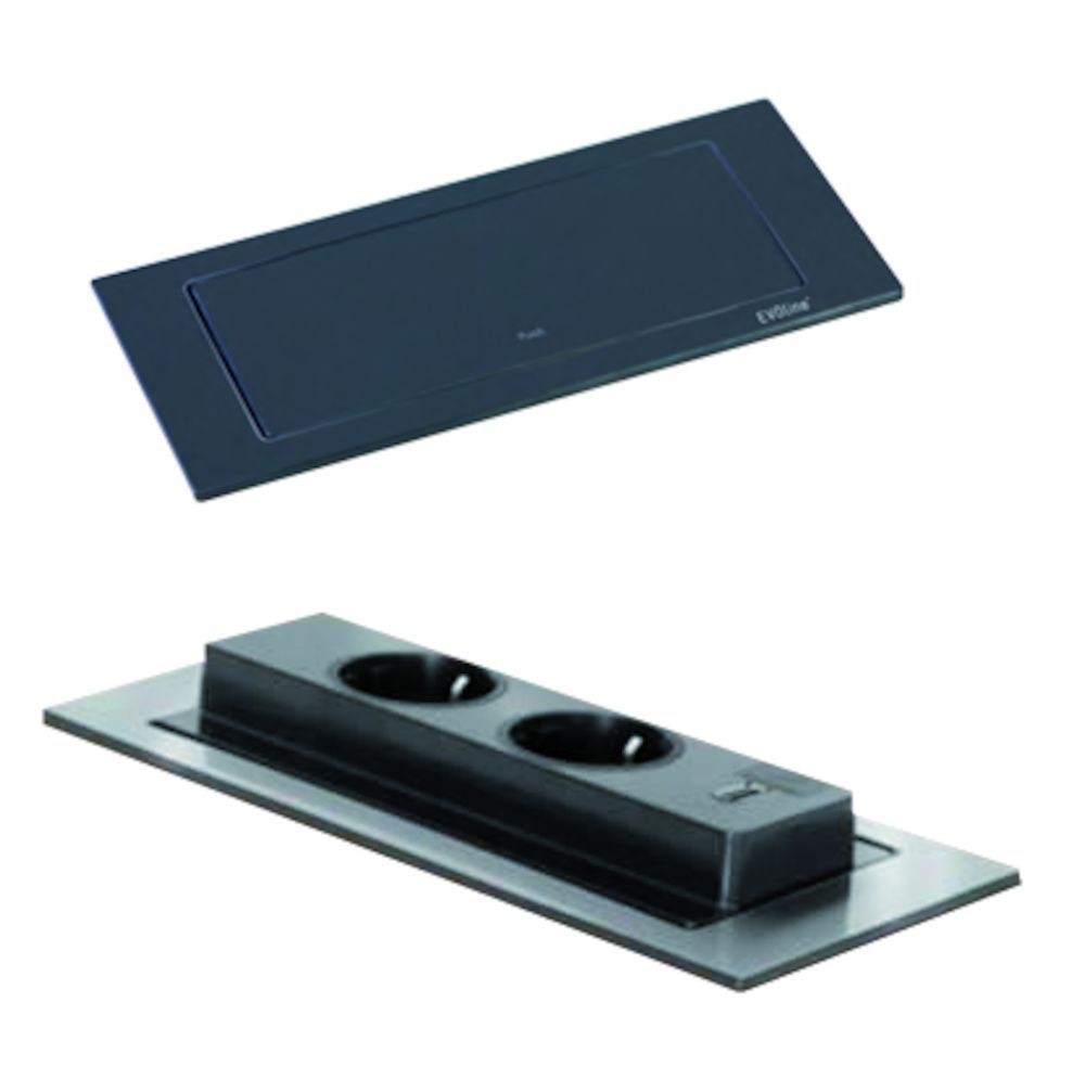 Dubbel stopcontact met 1 universele USB-A lader. Minimale afstand bladrand: 50 mm, uitsparing: 215 x 88 mm.