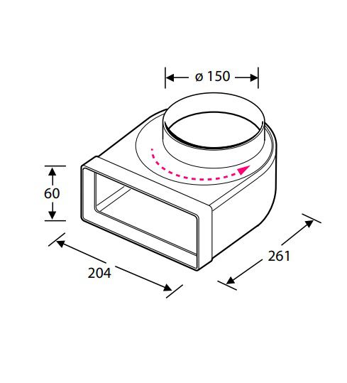Lengte: 261 mm. Uitwendig: ø 150 mm - Inwendig: 204 x 60 mm.