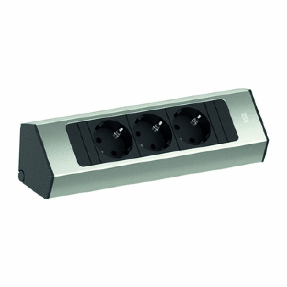 Casia 2 Hoekstopcontact kort met Belgische aarding in de kleur rvs-look. Voor plaatsing onder een bovenkast of op het blad. Kan zowel horizontaal als verticaal geplaatst worden.