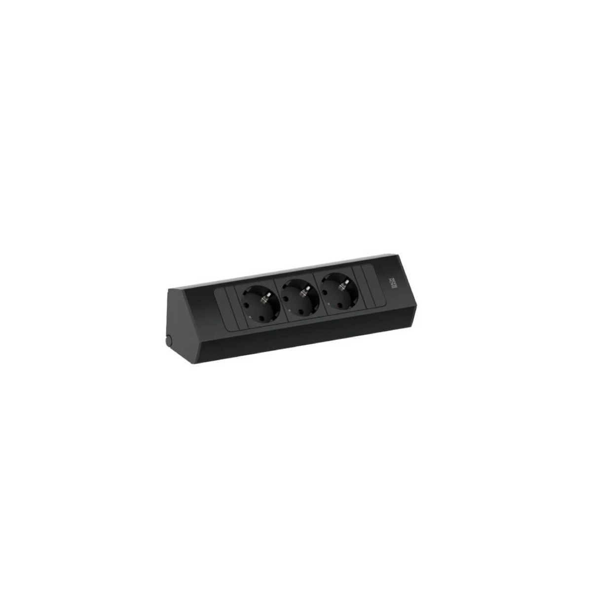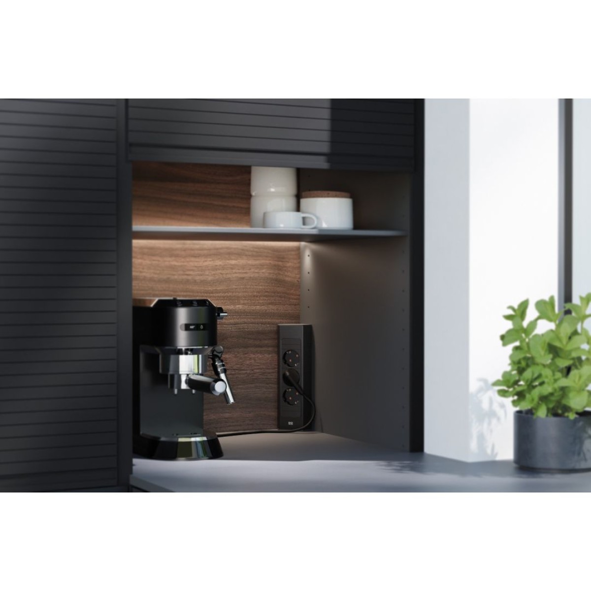 Casia 2 Hoekstopcontact kort in de kleur zwart. Voor plaatsing onder een bovenkast of op het blad. Kan zowel horizontaal als verticaal geplaatst worden.