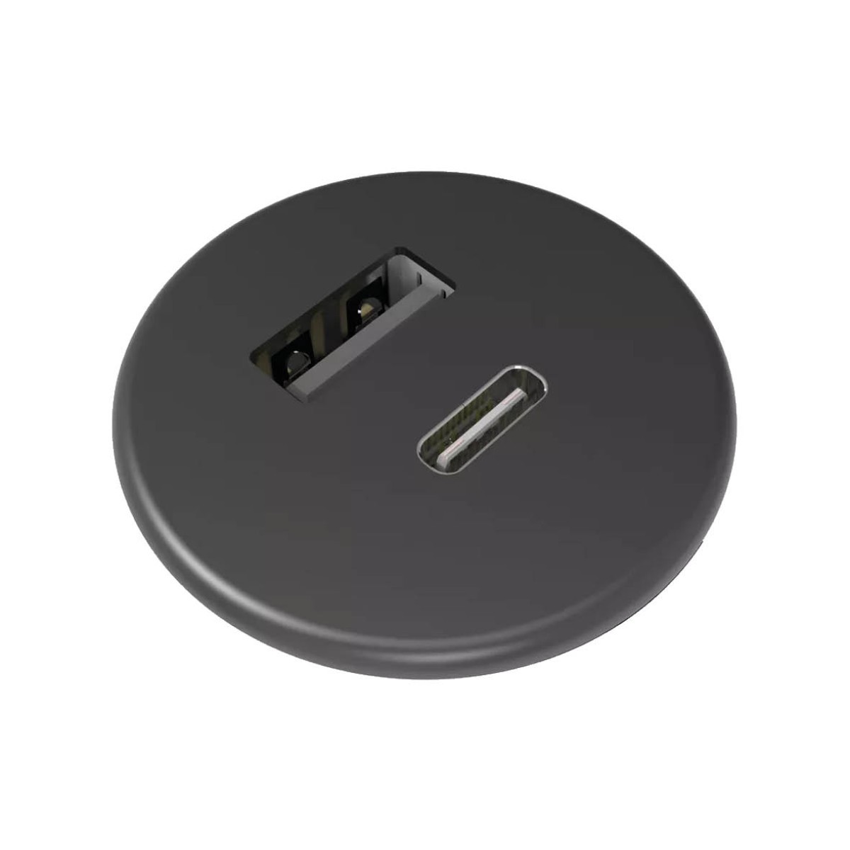 2-voudige inbouw universele USB lader 1xA en 1xC (totaal 20W ) Met 2500 mm aansluitkabel. Met 24V led aansluiting. inclusief trafo 24v/30W Doorsnede: 43 mm. Inbouwdiepte: 19 mm. Randdikte: 4 mm.