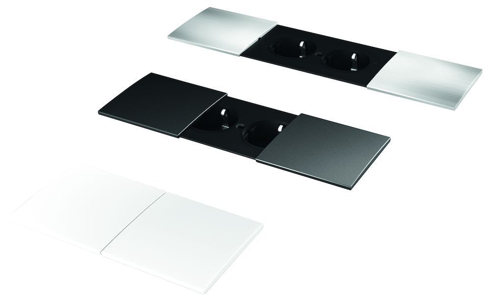 Dubbel stopcontact. Voor inbouw in achterwanden, fronten of in het werkblad.
