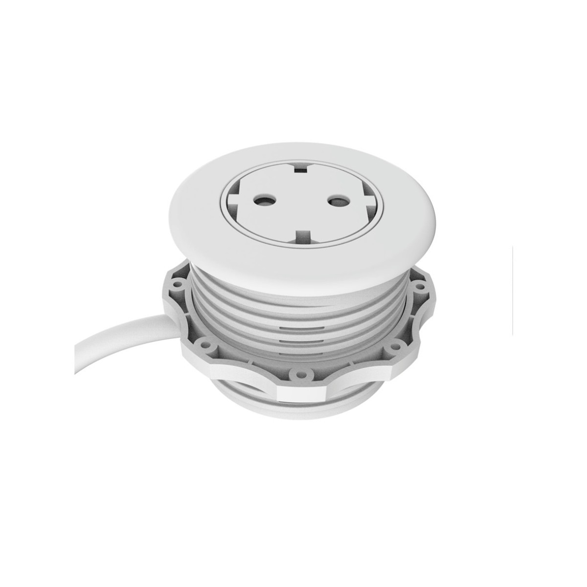 Enkel inbouw stopcontact met een geringe inbouwdiepte. Het stekkergedeelte wordt ingedrukt zodra de stekker erin gaat.