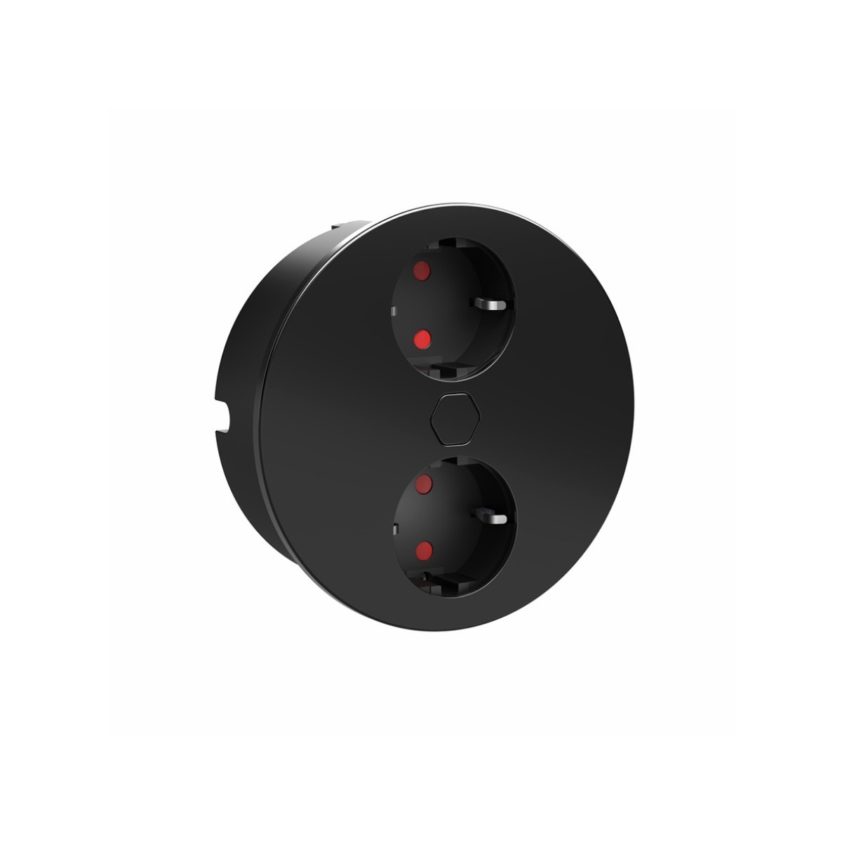 Dubbel stopcontact, ideaal voor montage in het werkblad. Met 1 druk op de knop opent en sluit dit stopcontact automatisch.