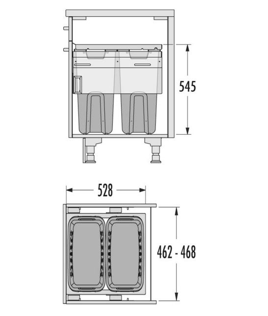 Aan de zijwanden en aan het front, volledig uittrekbaar