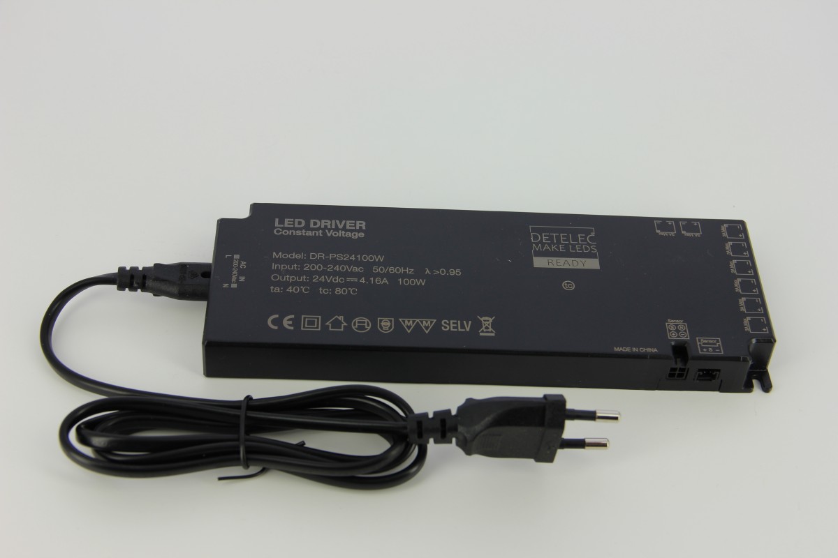 Ready - Voeding - 100 Watt .Werkspanning 230Vac - 24Vdc / PVC behuizing - IP20 / Max 72W belasting 1x led strip .