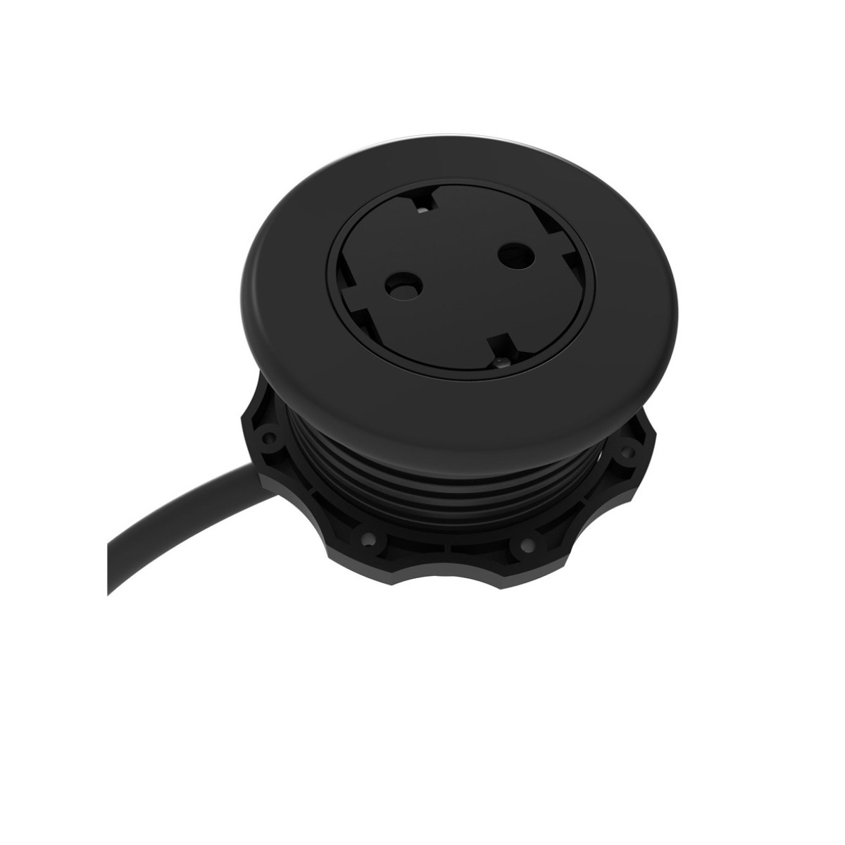 Enkel inbouw stopcontact met een geringe inbouwdiepte. Het stekkergedeelte wordt ingedrukt zodra de stekker erin gaat.